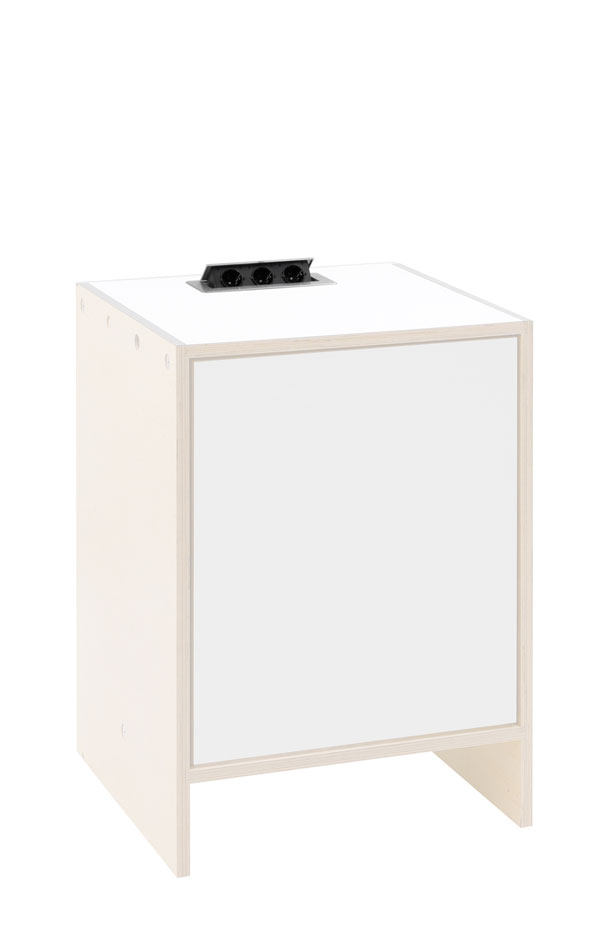 Die einfachen Grundmodule haben jeweils 5 Schubladen mit „push to open“-Technik, d.h. es reicht ein kleiner Stoß, um sie um einige Zentimeter herausgleiten zu lassen. Die hohen Schubladen sind so groß angelegt, dass auch große Töpfe darin untergebracht werden können. Das Grundmodul mit Schubladen gibt es in zwei Varianten: Einmal als Quader in den Dimensionen von Koch- und Spülmodul, einmal in halber Breite. Grundsätzlich ist das in mit der X2YLO-Küche entworfene System jedoch offen, weitere Modulvarianten sind bestellbar und sind z.T. auch schon realisiert worden (ein Beispiel: ein Kochelement, das auf die Anforderungen eines Rollstuhlfahrers abgestimmt ist).